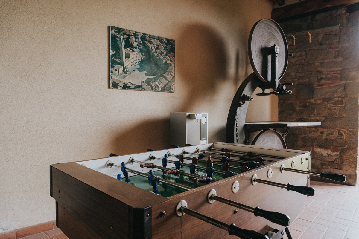 Rilassati nella grande piscina che si affaccia sulla vallata, accendi il barbecue e lasciati andare alla griglia (non ti preoccupare, agli utensili e alla legna da ardere ci pensiamo noi), sfida gli amici a ping pong, biliardino o altri giochi da tavolo, il tutto sempre impreziosito dalla splendida cornice della valle del Chianti.